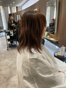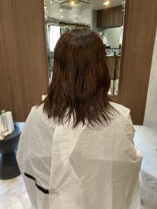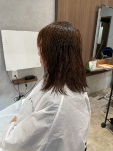 お客様はしばらく髪を伸ばしており、肩下のミディアムヘアでした。