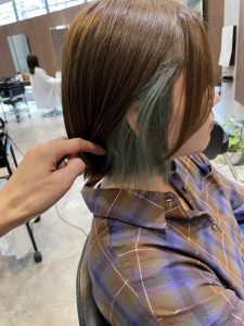 既にインナーカラーで色味が入っていた部分には、同じベースカラー剤をオンカラー。