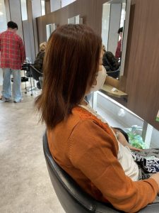 お客様がレッド系カラーを好まれていて、明るさや色味にこだわりたいというご希望だったため、「ただ染める」ではなく「魅せる白髪染め」を目指しました。
