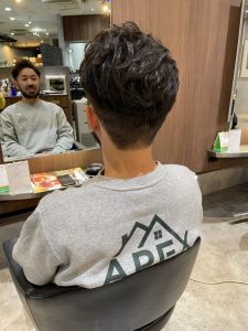 施術後、お客様は鏡を見て「完璧!」と大満足のご様子。トップのボリュームと流れる動き、刈り上げのメリハリ、全てが理想通りとのことでした。