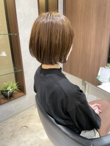 この一手間で、クセがあっても広がらず、ツヤとまとまりがグッと引き立つショートに仕上がります。