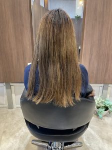 仕上がった髪を見て、お客様は何度も鏡を見て喜んでくださり、見た目だけでなく、気持ちまで前向きに変化されていました。