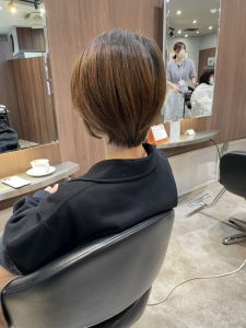 カット後は、首元がすっきりし、シルエットにもきれいなくびれが出て、まさにご希望だった「今っぽいショート」に仕上がりました。